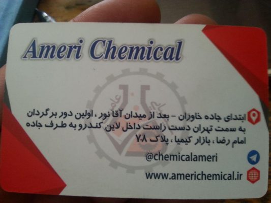 شیمیایی عامری افتخار دارد با تیمی حرفه در زمینه تهیه وتوزیع انواع مواد شیمیایی و انواع حلال ها و اسیدها صنعتی وبهداستی و آزمایشگاهی با تجربه سالیان دور در این ضمینه ها آماده همکاری با تمامی کارخانجات و تمامی مشاغلین فعال در این ضمینه همکاری های لازم را مبذول نمایید باعث افتخار است که ما میتوانیم کمکی در تامین انواع مواد و حلال های داشته باشیم